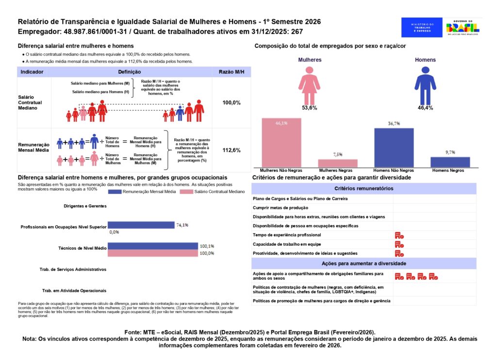 O Relatório de Transparência Salarial será amplamente divulgado em nossos canais oficiais, incluindo este site e redes sociais, assegurando que todos(as) os(as) trabalhadores(as) e demais partes interessadas possam ter acesso.